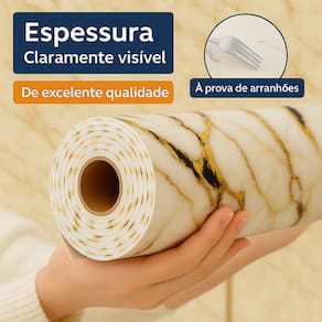 Design: Estampa realista de mármore, sem divisórias visíveis, para um acabamento contínuo.