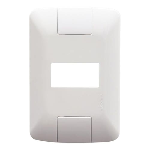 Características Adicionais Placa 1 posto horizontal 4x2 em termoplástico branco com acabamento brilho Instalação prática, visual impecável, sem desalinhamento ou fixação aparente Compatível somente com módulos da linha Aria