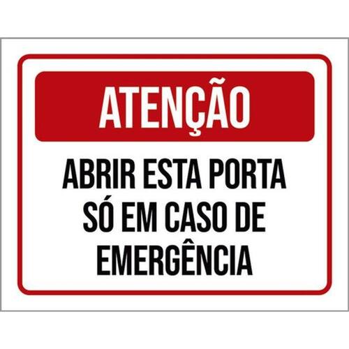 Placa Atenção Abrir Porta Só Em Caso Emergência 36x46 Placas de sinalizaço fabricadas com poliestireno de alto impacto PSAI de 2mm e impressão ultravioleta.