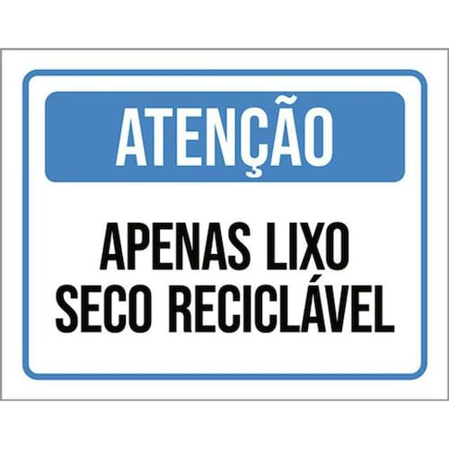 Placa Atenção Apenas Lixo Seco Reciclável 36x46 Placas de sinalizaço fabricadas com poliestireno de alto impacto PSAI de 2mm e impressão ultravioleta.
