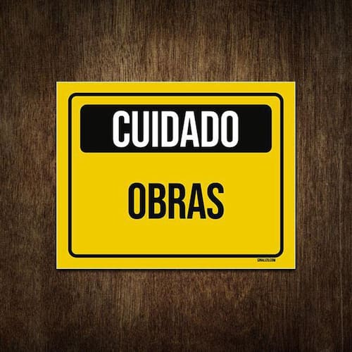 Placa Atenção Cuidado Sinalização Obras 27X35