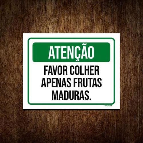 Características: - Placa decorativa Atenção Favor Colhe Frutas Maduras - Fabricadas em poliestireno de alto impacto - Ideal para decorar e organizar os ambientes - Impressão ultravioleta