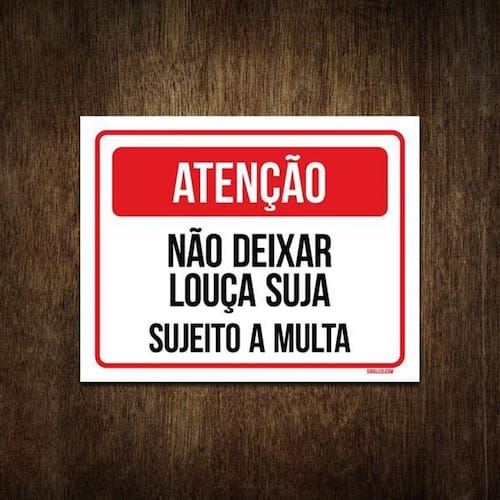 Placa Atenção Não Deixar Louça Suja Sujeito A Multa 27X35