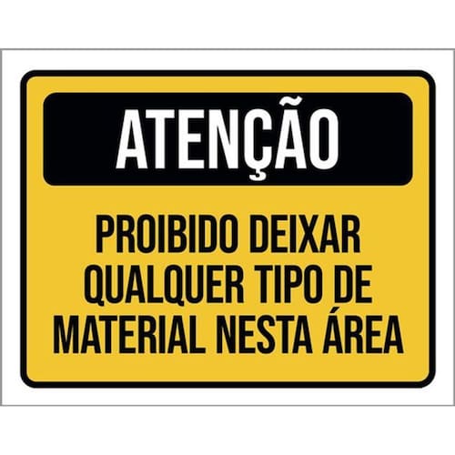 Placa Atenção Proibido Deixar Qualquer Tipo Material 36x46 Placas de sinalizaço fabricadas com poliestireno de alto impacto PSAI de 2mm e impressão ultravioleta.