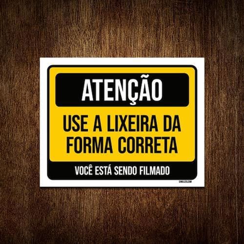 Placa Atenção Use Lixeira Forma Correta Filmado 18x23