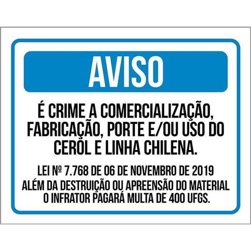 Placa Aviso - É Crime Uso Porte De Cerol Linha Chilena 36x46 - Informações do Produto: Placas decorativas fabricadas com poliestireno de alto impacto PSAI de 2mm e adesivo vinil automotivo de alta performance. - Medidas: 36cm x 46cm - Fixação: Todas as placas possuem adesivo dupla face para aplicação em qualquer tipo de superfície lisa. de 12 meses e disponibilidade imediata. Marca: Não Informado