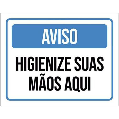 Placa Aviso Higienize Suas Mãos Aqui Azul 36x46 Placas de sinalizaço fabricadas com poliestireno de alto impacto PSAI de 2mm e impressão ultravioleta.