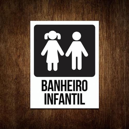Placa Banheiro Infantil - Menino E Menina Placa Branca 27X35
