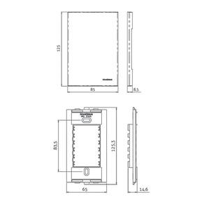 Dimensões AxLxP (mm): Placa: 125x85x8,5 - Suporte: 125,3x65x14,6