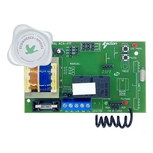 Placa Eletrônica de comando AC4 será enviada de acordo com a disponibilidade do estoque das versões atualizadas Adquira este anúncio somente se precisar da Central para Abrir e Fechar. E NÃO precisar de nenhum recurso especial como rampa, freio e parada suave. Compatível para motores ANALÓGICOS basculante/deslizante monofásicos 1/5, 1/4, 1/3 HP que utilizam fim de curso com fio através de 3 ou 5 pinos (jumper). Permite funções básicas (abertura e fechamento). Compatível somente com controles 433Mhz. CARACTERÍSTICAS TÉCNICAS