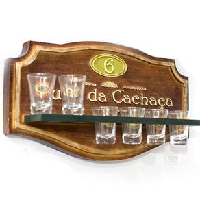 Placa Clube da Cachaça + 6 copos (42x24cm) A Placa Clube da Cachaça é confeccionada em fibra de vidro, simula uma placa de madeira com os dizeres, CLUBE DA CACHAÇA. O conjunto já vem com os 6 copos da coleção. Ideal decoração em casa, bares, tabacaria e restaurantes. São peças com 42 x 24 cm é produzido artesanalmente, pintado nos mínimos detalhes à mão, resulta em um produto de indiscutível qualidade e único. Excelente peça para presentear, colecionar ou decorar escritórios, barzinhos, restaurantes, salas e churrasqueiras.