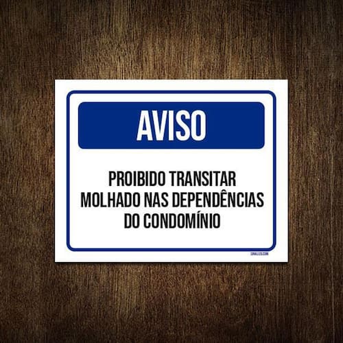 Placa Condomínio - Aviso Proibido Transitar Molhado 27X35