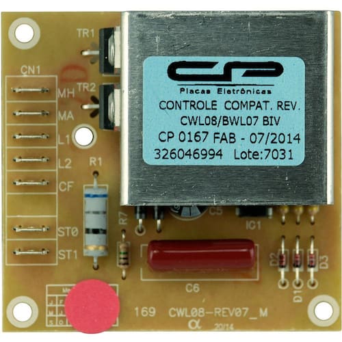 A Placa Controle de Reversão é responsável por fazer a reversão do sentido de rotação do motor durante o processo de lavagem. Modelos Compatíveis: BWL09A, BWL07A, CWL08B, CWL08A, CWL08C, CWL10A