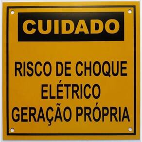 - Utilizada para advertir e sinalizar o perigo de choque elétrico proveniente de um gerador de energia elétrica: solar, eólica, hidráulica ou moto geradores.