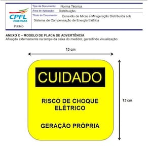Placa Cuidado - Geração Própria - Padrão CPFL Tamanho 13x13 ca 20Un