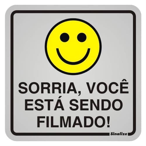 Placa de Alumínio Auto-Adesiva 12x12cm Sorria Você Esta Sendo Filmado 900 AJ SINALIZE