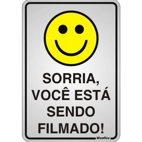 Placa de Alumínio Auto-Adesiva 16x23cm Sorria Você Esta Sendo Filmado 150 AI SINALIZE