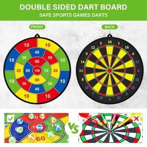 Tabuleiro de dardos grande de 73,7 cm para crianças, tabuleiro de dardos dupla face com bolas adesivas e dardos, brinquedos divertidos para esportes internos/externos, presentes para meninos e meninas - Jogo de alvo para crianças: o pacote inclui: 1 tabuleiro grande, 12 bolas adesivas (3 cores), 6 dardos pegajosos, 1 gancho. O diâmetro do tabuleiro de dardos é de 73 cm, o tamanho grande significa maiores taxas de acerto e mais diversão para crianças/iniciantes. Com vários acessórios, você pode aproveitar a diversão do jogo com mais jogadores. - Melhore as habilidades: o design do tema frente e verso tem diferentes modos de jogo e experiência de jogo, ajuda as crianças a melhorar as habilidades matemáticas, coordenação motora, reconhecimento de cores e níveis de atenção. Utilizando-o para jogos de matemática com estudantes, o sistema de pontos o torna desafiador o suficiente enquanto interessante. - Design dobrável e materiais seguros: o kit de dardos para crianças é dobrável e portátil, você pode aproveitá-lo mesmo viajando ou acampando, fácil de abrir e dobrar. A placa de dardos de brinquedo pode ser facilmente montada em ambientes internos ou externos. Basta pendurar o alvo de dardos e você poderá aproveitar o jogo. - Brinquedos esportivos internos/externos: jogue estes jogos divertidos de dardos onde quiser. Ajuda você a relaxar em um dia agitado, também um ótimo jogo social para amigos e familiares. Melhores brinquedos engraçados para crianças, brinquedos de alívio de desconforto para trabalhadores. - Melhor escolha de presente para crianças: mantenha as crianças longe da TV, jogos para celular, telas de tablets e participe deste jogo divertido por algumas horas, o que é bom para sua saúde. Perfeito para festas de aniversário de crianças, meninos, meninas, adultos, família, festas de classe, atividades internas e externas. Melhores presentes de brinquedo para meninos e meninas de 3, 4, 5, 6, 7, 8, 9, 10, 11, 12 anos, meninos e meninas.