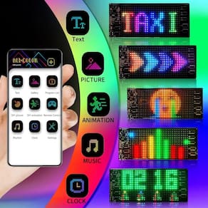 - ?Função personalizada?Esta placa LED pode ser projetada de acordo com suas necessidades e cenas, texto DIY, padrões, animações, grafites desenhados à mão, ritmo de música e também pode ajustar o brilho e a velocidade, o sinal de LED digital pode atender perfeitamente às suas necessidades.