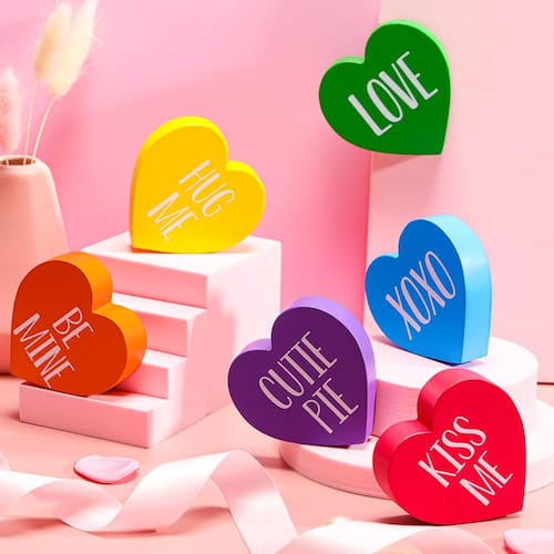 Características: 2 cm de espessura: Eles podem ser colocados na mesa de forma estável e não desbotam ou quebram facilmente, então você pode aplicá-los por um longo tempo. 6 cores diferentes e tamanho fofo: 6 palavras românticas para expressar amor e 6 cores diferentes e elegantes. Dá a você uma decoração fácil, mas delicada: Boa adição à bandeja em camadas da sua casa de fazenda, manto, prateleira, mesa de centro, bar de café ou capa de mesa. Pintura de madeira, secagem ao ar: Cores românticas com texto doce, adicionarão uma atmosfera festiva calorosa e feliz Expresse seus sentimentos ao seu amor: Este conjunto de corações de conversa é uma boa combinação para transmitir uma emoção forte. Compartilhe com outras pessoas como presentes: Você pode dar essas decorações românticas para seu amante ou amigos para expressar seu amor por eles. Especificações: Material: madeira Cor: laranja, roxo, rosa, azul, amarelo, verde Tamanho: 7,6 x 7,6 x 2 cm / 3 x 3 x 0,75 polegadas Quantidade: 6 peças O pacote inclui: 6 placas de madeira em forma de coração Observações: Medição manual, considere pequenos erros no tamanho. A cor pode existir pequenas diferenças devido a diferentes monitores. As palavras no produto não são nossa marca registrada, apenas para decoração, nossa marca registrada é Qunclay. - Conjunto de corações de conversa: o pacote vem com 6 peças de decorações de coração de conversa de madeira dos namorados em cores diferentes, a decoração em forma de coração mede aprox. 7,6 x 7,6 x 2 cm / 3 x 3 x 0,75 polegadas, a espessura certa faz com que eles possam ficar em pé sozinhos; com amplas quantidades e tamanho agradável, o suficiente para criar uma atmosfera romântica - Expresse seus sentimentos ao seu amor: um total de 6 cores, o coração rosa é impresso com [KISS ME], o coração amarelo é impresso com [HUG ME], o coração laranja é impresso com [BE MINE], o coração roxo é impresso com [CUTIE PIE], o coração verde é impresso com [LOVE], o coração azul é impresso com [XOXO]; Chamamos esses corações de conversa, que podem expressar seu sentimentos profundos para o seu love, letting him or her remember you forever in the heart - Artesanato de pintura de madeira: os signos do coração do Dia dos Namorados são feitos de material de madeira de qualidade, que têm textura suave, bem polido e não tem rebarba, confortável ao toque, bem acabamento, resistente ao desgaste e ao rasgo; Os artesanatos de madeira são pintados artesanais e secam ao ar, seguros e confiáveis e as cores românticas não são fáceis de desbotar, também podem ser colocados na mesa de forma estável, eles não desbotam ou quebram facilmente, para que você possa aplicá-los por um longo tempo - Decorações românticas: este sinal de coração de conversa de madeira é uma boa adição à bandeja em camadas da sua casa de fazenda, manto, prateleira, mesa de centro, bar de café ou capa de mesas, também apropriado para cafeteria, armazenamento, escritório, hotel, sala de aula, supermercado, restaurante, bonito o suficiente para decorar sua casa para férias, adicionando uma atmosfera romântica ao dia dos namorados à noite e à noite de confissão - Compartilhe com os outros como presente: dar ao seu ente querido algo inesquecível, este coração de madeira do Dia dos Namorados seria uma boa escolha; Estes corações rústicos de madeira são bons presentes para o Dia dos Namorados ou aniversários, que expressarão efetivamente seu amor e desejos se você enviá-los para seus familiares ou amantes, eles ficarão emocionados e animados por seu amor e carinho