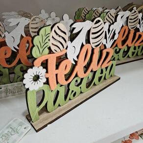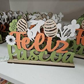 Placa de Mesa Feliz Páscoa MULTIART -Placa de Mesa Páscoa MULTIARTComposição: MDF, Glitter e poliéster12x18x3cmCaracterísticas Gerais do Produto:
