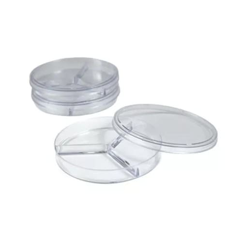 Placa de petri descartável 90 x 15 mm - dividido em três partes