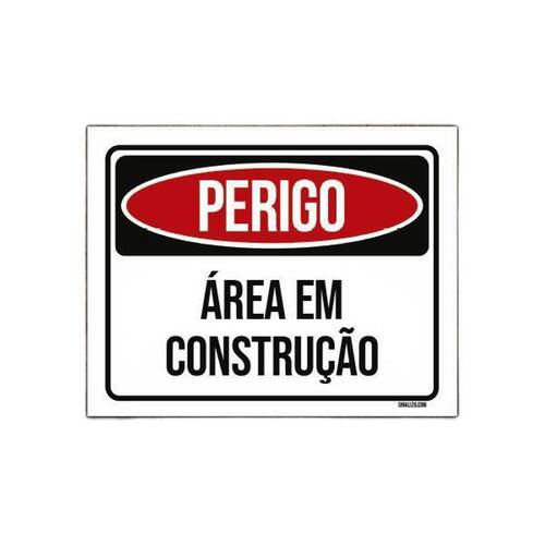 Placa De Sinalização - Perigo Área Em Construção 27X35