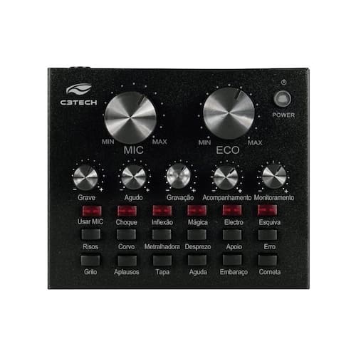 Eleve a qualidade do seu áudio para um nível profissional com a Placa de Som Streaming C3Tech MX-50BK. Ideal para gamers, streamers e podcasters, ela oferece múltiplas conexões para microfones e instrumentos, além de divertidos efeitos de voz em tempo real, transformando seu PC em um verdadeiro estúdio de som e melhorando a imersão do seu público.