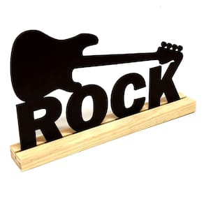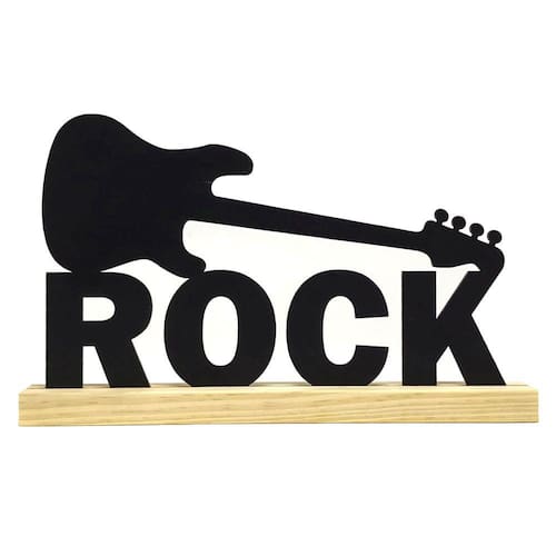 Medida do produto: 25 cm Material: madeira de pinus e mdf laminado Acabamento: laminado preto Tema decoração: rock n roll Técnica: corte a laser cnc Peso aproximada: 200 g Garantia: 30 dias