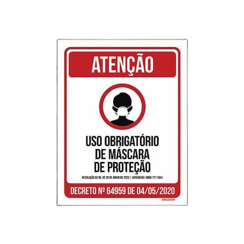 Principais Características: - Placa decorativa de atenção para uso obrigatório de máscara de proteção - Fabricada em poliestireno de alto impacto PSAI de 2mm - Adesivo vinil automotivo de alta performance - Medidas: 18cm x 23cm - Fixação fácil com adesivo dupla face - Pode ser aplicada em qualquer tipo de superfície lisa - Garantia de 12 meses - Disponibilidade imediata