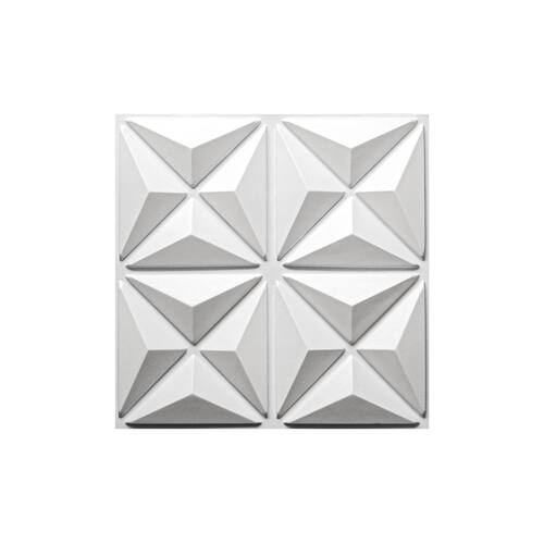 Placa Decorativa 3d M Revestimento De Parede Mini Estrelar Quantidade do anúncio: 1m 4 placas Modelos: Mini Estrelar Todas as placas são da cor branca As placas são de poliestireno PSAI plástico Tamanho: 50x50cm exceto modelos piramidal e prisma 48x 48cm Espessura: 1 mm
