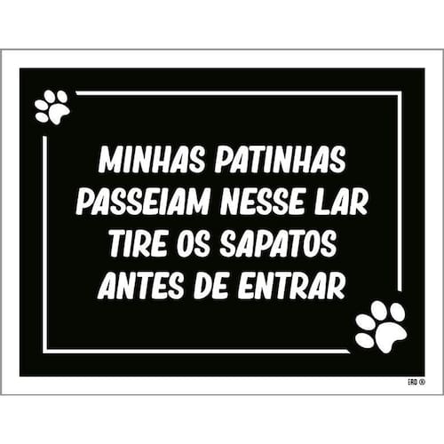Placa Decorativa - Minhas Patinhas Passeiam Nesse Lar 36x46 Informações do Produto: Placas decorativas fabricadas com poliestireno de alto impacto PSAI de 2mm e impressão ultravioleta. - Medidas: 36cm x 46cm - Fixação: Todas as placas possuem adesivo dupla face para aplicação em qualquer tipo de superfície lisa. de 12 meses e disponibilidade imediata. Marca: Não Informado Ean: 7794883474012