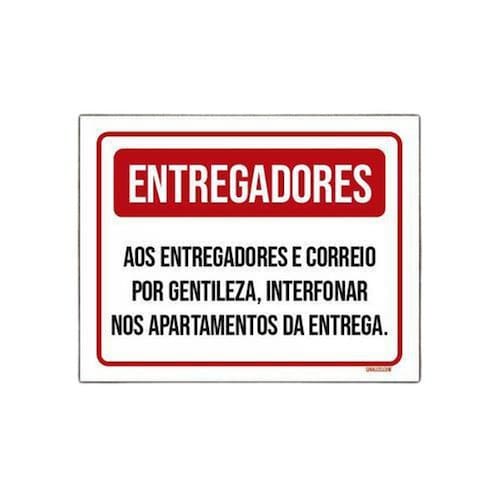 Características: - Placa decorativa Entregadores Correio Interfonar Apartamentos - Fabricadas em poliestireno de alto impacto - Ideal para decorar e organizar os ambientes - Impressão ultravioleta
