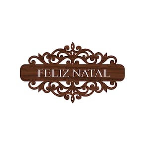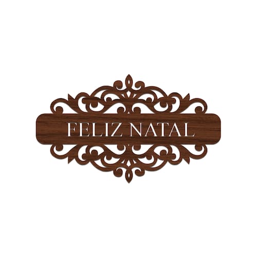 Placa Feliz Natal Com Arabesco 30cmx17cm - Cria Arte Laser madeira escuro -