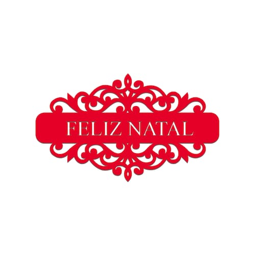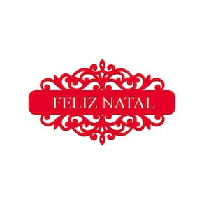 Placa Feliz Natal Com Arabesco 30cmx17cm - Cria Arte Laser Vermelho -