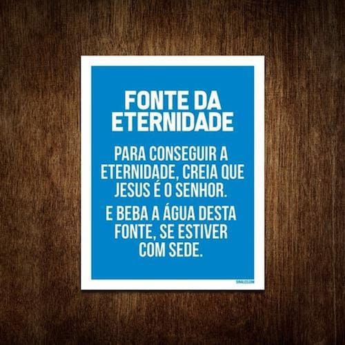 Placa gospel - fonte da eternidade jesus é o senhor 27x35 Placa recolha coco fezes cachorro sinalização vizinho legal Não precisa furar, não empena e nem perde a cor no sol, pode ser rebitada e não rasga - informações do produto: Placas decorativas fabricadas com poliestireno de alto impacto psai de 2mm e adesivo vinil automotivo de alta performance. - medidas: 27cm x 35cm - fixação: Todas as placas possuem adesivo dupla face para aplicação em qualquer tipo de superfície lisa. de 12 meses e disponibilidade imediata. Marca: Não Informado Ean: 7908644443159