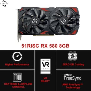 - PCIe 3.0: A placa de jogo gráfica RX580 51risc usa slot gráfico PCI Express 3.0, plug and play, fácil de usar, bom desempenho, também com chip processador de fluxo 2048, durável e prático, tem uma longa vida útil.