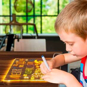 A Placa Luminária LED com Marcador permite desenhar, escrever frases, deixar recados, personalizar mensagens e criar efeitos incríveis com iluminação