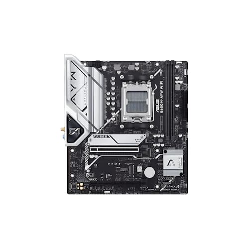 A Placa-Mãe ASUS B650M-AYW Wi-Fi é compatível com processadores AMD Ryzen que utilizam o soquete AM5, oferecendo suporte a tecnologias atuais para montagem de computadores de uso doméstico, corporativo e para entretenimento.