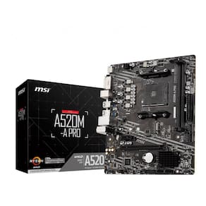 ModeloA520M-A PRO Fator de formaMicro ATX SocketAM4 ChipsetAMD A520 Chipset Armazenamento4x SATA 6Gb/s | 1x M.2 (Key M) (from AMD Processor) Memória RAM2 slots de memória DDR4, suportam até 64 GB ProcessadorSuporta AMD Ryzen™ de 3ª geração Processadores de desktop e AMD Ryzen™ Processadores de desktop 4000 G-Series Gráfico1x HDMI 2.1 | 1x DVI-D Portas LAN1x Realtek® RTL8111H Gigabit LAN controller Slots de expansão1x PCIe 3.0 x1 | 1x PCIe x16 USB2x USB 3.2 Gen 1 5Gbps | 6x USB 2.0 ÁudioRealtek® ALC892/ALC897 Codec 7.1-Channel High Definition Audio Portas do painel traseiroLAN | HDMI | DVI-D | Keyboard / Mouse | USB 3.2 Gen 1 5Gbps Type-A | USB 3.2 Gen 1 5Gbps Type-A | USB 2.0 | Audio Connectors Dimensões23.6 cm x 20 cm