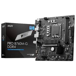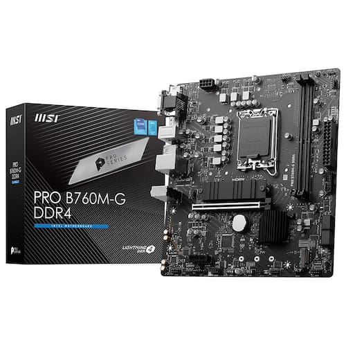 Com suporte a processadores Intel de 12ª a 13ª geração e soquete LGA 1700, a placa-mãe PRO B760M-G da linha MSI oferece arquitetura DDR4 com 2 slots de memória e capacidade de até 64GB, além de saidas de vídeo, DVI, HDMI e DisplayPort integradas, 2 slots de armazenamento M.2 e 4 conectores SATA, tecnologia de rede e áudio Realtek e suporte a sistemas operacionais Windows 10 e 11.