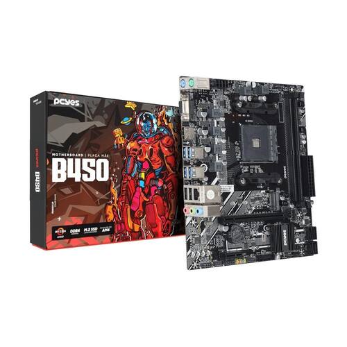 Placa mãe pcyes b450 amd am4 ddr4 m2 vga hdmi A placa mãe pcyes b450 amd am4 ddr4 m.2 vga hdmi é a escolha ideal para quem busca montar um pc com desempenho confiável e compatibilidade com processadores ryzen. Com suporte à memória ddr4, armazenamento via m.2 e saídas de vídeo integradas, ela oferece uma base sólida para games, produtividade e uso geral. Projetada para proporcionar estabilidade, desempenho e conectividade, a placa atende tanto usuários exigentes quanto aqueles que desejam uma boa relação custo-benefício para upgrades ou novos setups. Especificações técnicas Socket: am4 compatível com processadores amd ryzen Chipset: amd b450 Memória: suporte até 64gb ddr4 Vídeo: saídas vga e hdmi integradas Fator de forma: micro atx Conteúdo da embalagem 1 placa mãe pcyes b450 amd am4 Manual do usuário 1 espelho traseiro i/o Cabos sata Envio Envio em até 24 horas após a confirmação do pagamento ou no próximo dia útil. 12 meses contra defeitos de fabricação. Marca: Não Informado