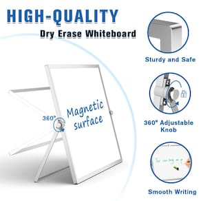 Grtard Quadro magnético apagável a seco com suporte, 45,7 cm x 35,5 cm, cavalete magnético grande de dupla face, quadro branco de mesa, quadros brancos portáteis apagáveis a seco para crianças, desenho, casa, escola, escritório - ??Conjunto de quadro branco tudo-em-um?Este pequeno conjunto tudo-em-um de quadro branco oferece a melhor conveniência! Inclui um quadro branco dupla face de 45 x 35 cm com suporte; 10 marcadores vibrantes apagáveis a seco para ajudar você a organizar ideias e destacar pontos-chave; 6 ímãs fortes para proteger documentos ou anotações importantes; e 2 borrachas duráveis. Este conjunto tem tudo o que você precisa para planejamento, ensino, brainstorming e expressão criativa. Pronto para usar direto da caixa — conveniente e eficiente! - ??Escrita suave e fácil de apagar?Nosso quadro apagável a seco suave e durável para superfícies infantis é especialmente projetado para traços ousados e claros com marcadores apagáveis a seco. A limpeza é tão simples — sem manchas, sem fantasmas, e com uma toalha de papel úmida, sua prancha ficará como nova! Se você estiver fazendo anotações rápidas ou criando planos detalhados, este quadro branco para crianças garante que cada marca seja impecável e fácil de limpar. - ??Quadro branco ajustável de 360°?Este quadro magnético apagável a seco com suporte possui um suporte ajustável de 360° que permite girar e travar facilmente o quadro em qualquer ângulo, tornando-o adequado para vários cenários. Coloque-o plano para sessões de brainstorming colaborativas, coloque-o na vertical para organizar listas de tarefas ou pendure-o na parede para economizar espaço. Seu design flexível se adapta a todas as suas necessidades. O suporte antiderrapante garante estabilidade durante o uso, enquanto o tamanho compacto se encaixa perfeitamente em mesas, bancadas ou salas de aula. - ??Quadro branco de dupla face versátil?Este quadro branco exclusivo de mesa de dupla face oferece o dobro do espaço de escrita enquanto reduz o desperdício de papel. Em casa, é um companheiro de desenho ou planejador familiar; no escritório, ajuda sua equipe a debater e gerenciar projetos de forma eficiente; na cozinha, use-o para listas de compras ou menus diários; nas lojas, é perfeito para exibir informações promocionais. Liberte sua criatividade e desfrute de infinitas possibilidades! - ??O presente perfeito para todos?Este pequeno conjunto de quadro branco não é apenas funcional, é também um presente atencioso e significativo. Perfeito como presente de aniversário ou feriado para estudantes, professores, familiares ou amigos. Cada uso proporciona seus desejos calorosos — que seus planos sejam claros e seus sonhos se tornem realidade. Não é apenas um presente; é um gesto sincero de apoio e encorajamento.