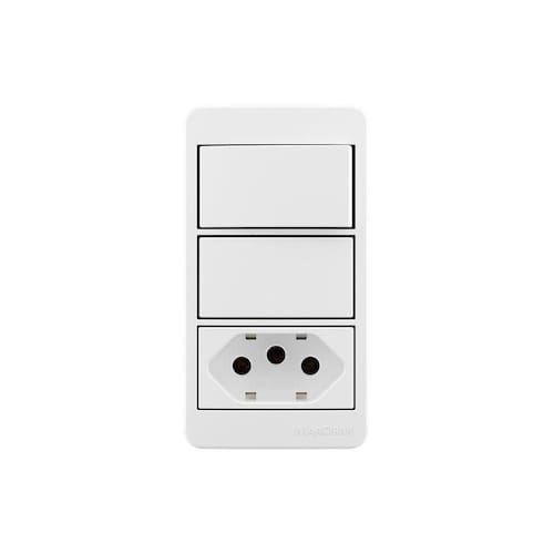 Placa para Condulete Caixa 3/4 com Interruptor Simples 10A e Tomada 2P+T 20A MarGirius Sleek Branco