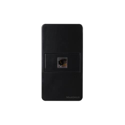 Placa para Condulete Caixa 3/4" com Tomada para Telefone MarGirius Sleek RJ11 4 Fios Preto Ebony