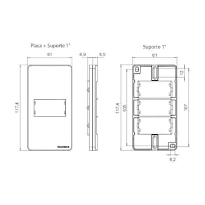 Dimensões AxLxP (mm): Placa: 117,4x61x13,4 - Suporte: 117,4x61