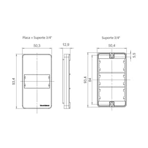 Dimensões AxLxP (mm): Placa: 93,4x50,3x12,9 - Suporte: 93,4x50,4
