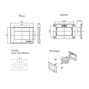Dimensões AxLxP (mm): Placa: 45x65x6,6 - Suporte 32,7x52,8x14,4