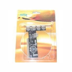Marca: Feasso.A Modelo: JPU-01.Possui 5 portas USB: sendo 4 portas no painel externo e 1 porta interna.Padrao USB 2.0: 40 vezes mais rápido que a versão anterior USB 1.1.Especificações Técnicas: Suporta todas as velocidades USB: desde baixa velocidade (1,5 Mbps), velocidade plena (12 Mbps) e alta velocidade (480 Mbps).Fácil instalação: com suporte Plug & Play.Compatível com: Webcams, impressoras, discos rígidos, mp3 e etc.Sistemas Operacionais compatíveis: Windows 2000/ Windows XP/ Windows Vista/ Windows 7.Requisitos do sistema: Pentium II 300 Mhz.64 Mb de memória RAM.Interface PCI disponível.Itens inclusos: 1 x Placa Usb PCI com 5 portas USB 2.0