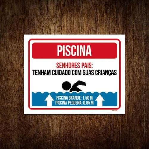 - Placa decorativa Piscina Senhores Pais Cuidado Com Crianças